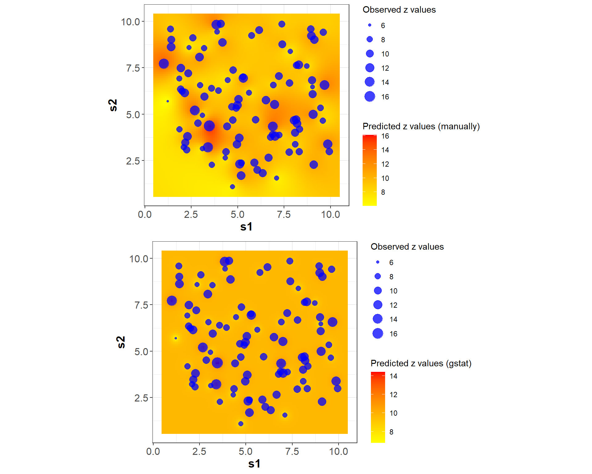 Note 1: I am not an expert in using the “gstat"package, so the comparisons presented may not be optimal or the most efficient. The package was used solely for illustrative purposes.