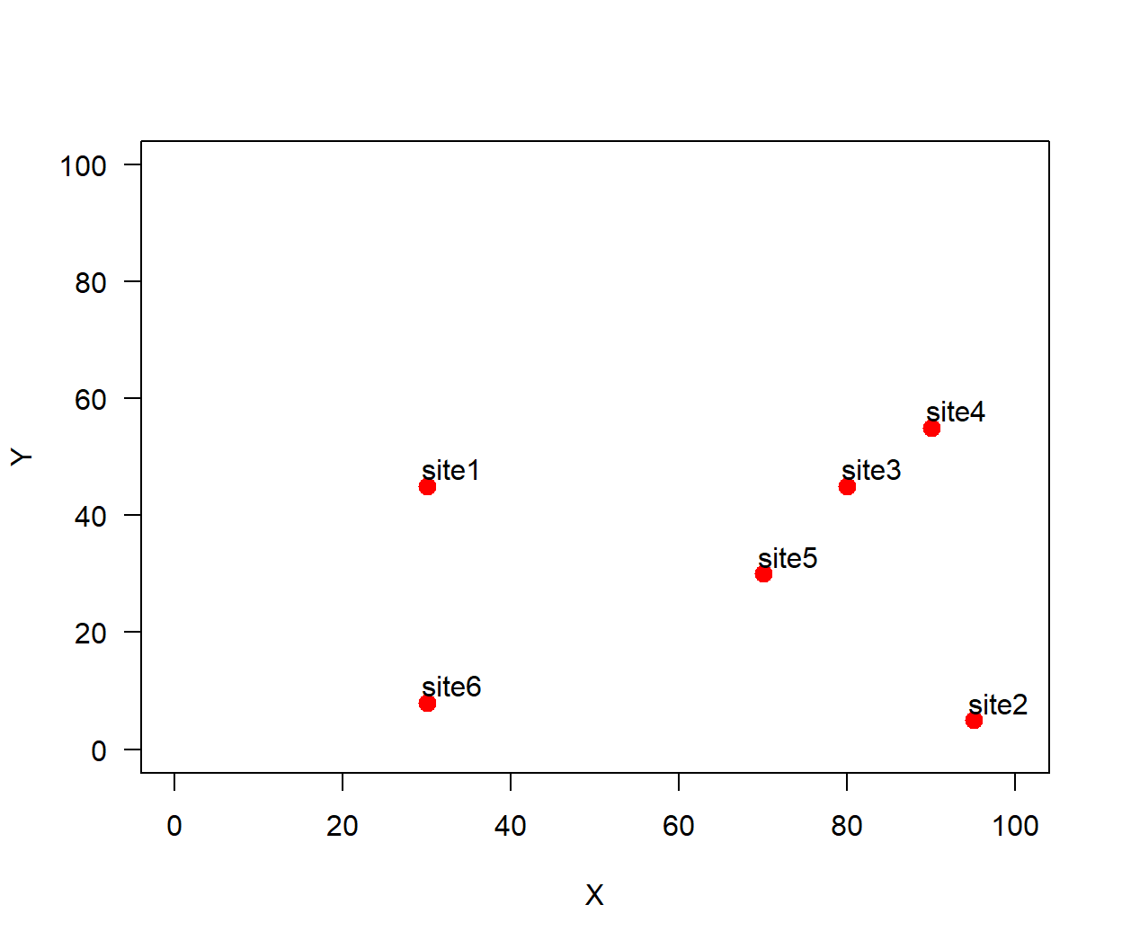 Computing the distance between a set of spatial data points is very important for spatial data analysis. If we have \(\mathbf{s}_i\) spatial locations, for \(i = 1, \ldots, n\), with \(n\) equal to the total number of spatial locations. The coordinates of \(\mathbf{s}_i\) are in latitude-longitude but for simplicity, we will denote them as \((x_i,y_i)\). Now, another set of spatial locations \(\mathbf{s}_j\) has coordinates \((x_i, y_j)\), hence the Euclidean distance between spatial points \(\mathbf{s}_i\) and \(\mathbf{s}_j\) is given by